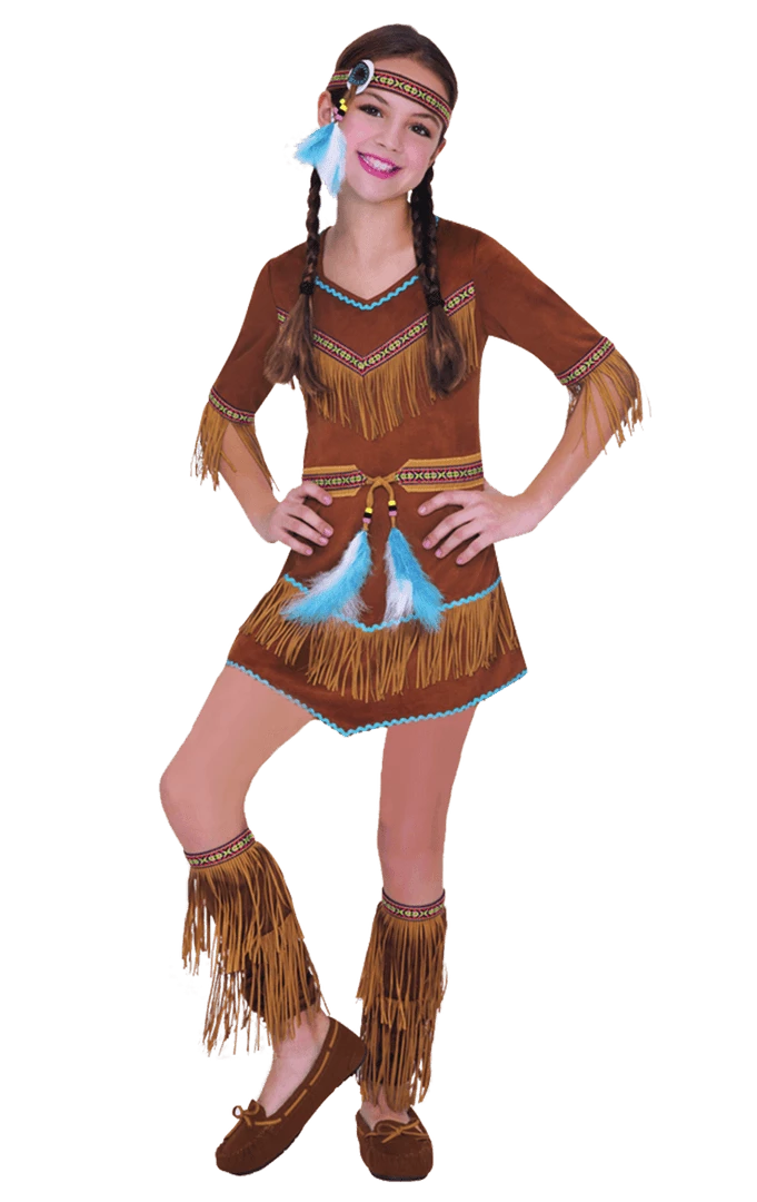 Dress to impress your tribe with this beautiful Child Dream Catcher Red Indian Girl Costume with matching leg warmers and headband. With matching tassels and detailing on the dress and leg warmers this beautiful costume would make any young Red Indian Girl the centre of her tribe. The matching headband comes complete with matching feathers, feathers being a symbol of many different things in Native American tribes. Be sure to wear these feathers with pride as they are thought to be a gift from the heavens as birds fly so high up in the sky.