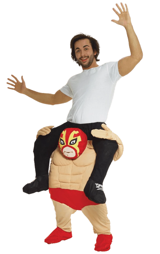 Are you ready to board a wrestlers shoulders in an attempt to impress the girls? Our Adult Wrestler Piggyback Costume allows you to do just that, without the terrifying possibility of being crushed beneath the wrestler. Bonus.