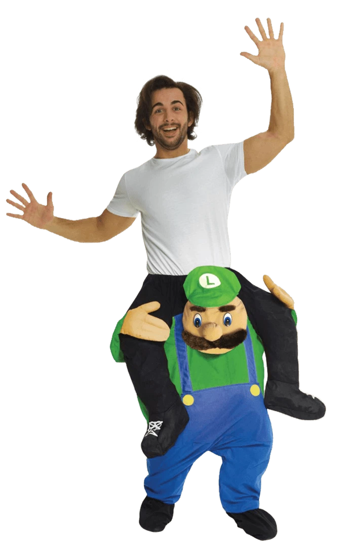 Grab some mates and go for a race or obstacle course in this Adult Luigi Super Mario Piggyback Costume!