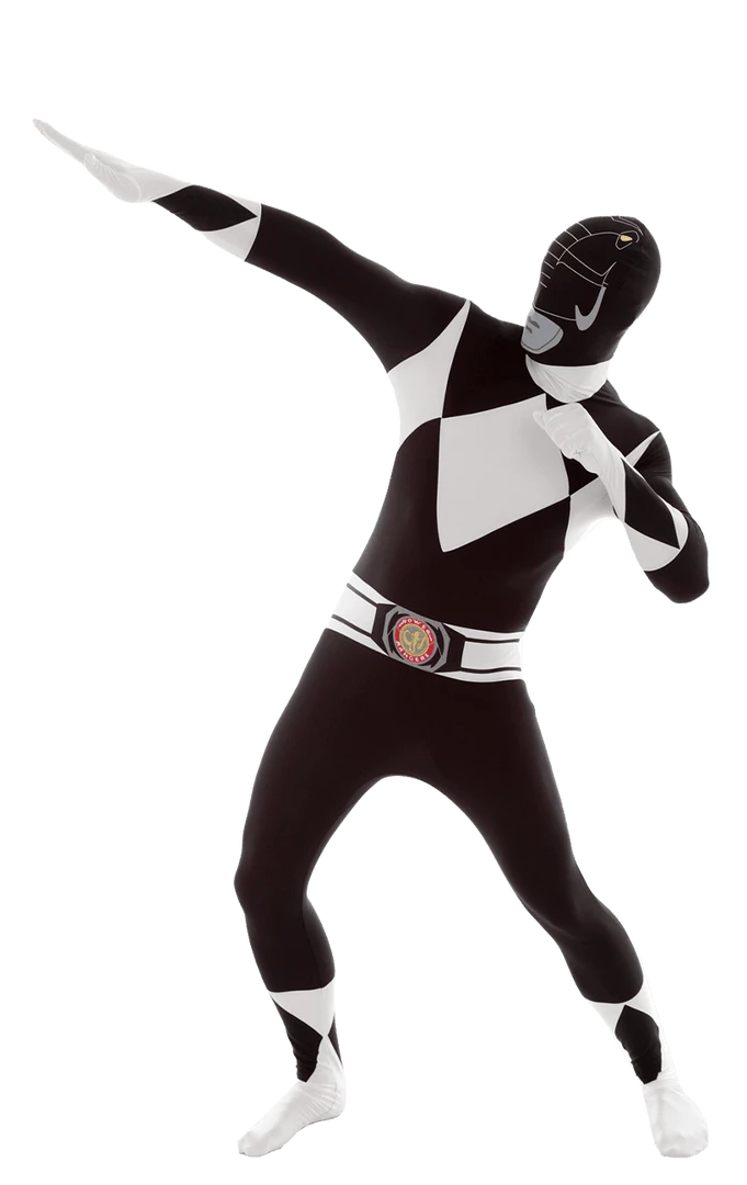 The Black Power Ranger Morphsuit costume is a black spandex bodysuit with a white diamond design on the body, sleeves and ankles that really make the costume stand out. There’s a printed Power Ranger belt and a facepiece on the hood for the complete Power Ranger look.