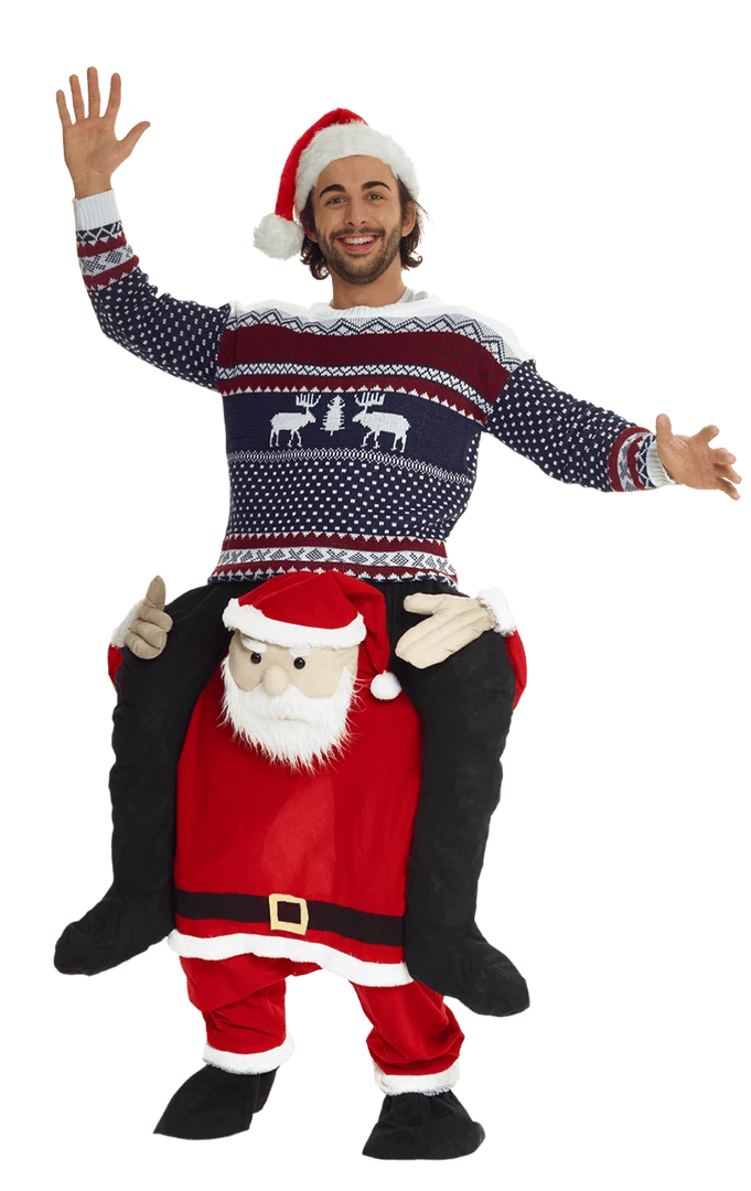 It’s a good thing Father Christmas is used to carrying around his big sack of presents! It’s prepared him to transform into our Piggyback Santa Costume this Christmas! Simply step into the costume and create the illusion that Santa himself is carrying you around on his back. Everyone loves Christmas, and you can bet everyone will love this costume just as much.