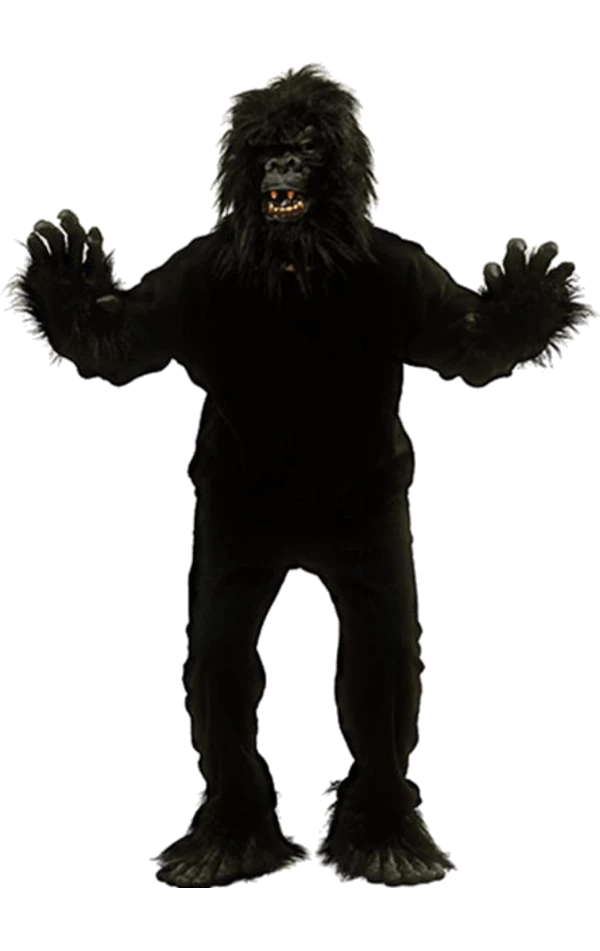 Your Adult Budget Gorilla costume contains a black soft-feel matching top and trousers combination. The trousers contain an elasticated waist for comfort and ease, allowing for an easy transformation of man or woman to ape.