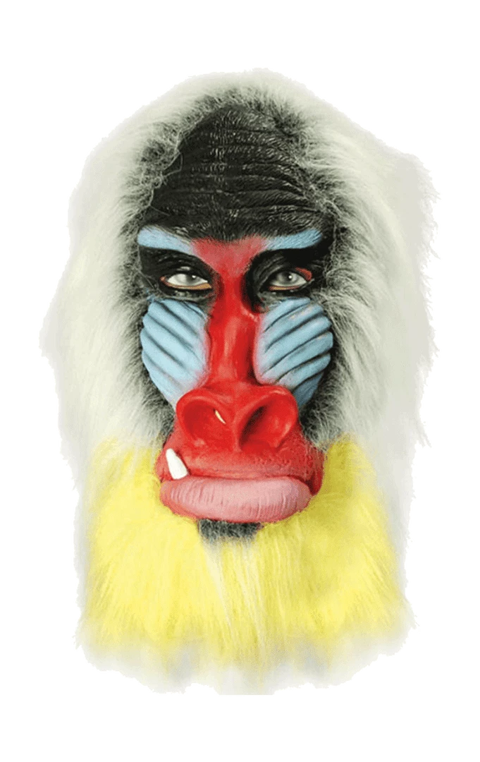 Scarily realistic overhead Baboon Facepiece with white and yellow faux fur detailing.