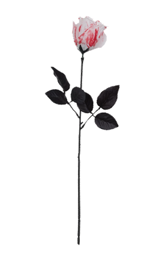 A bloody white rose adds a sinister and macabre touch to any back from the dead Halloween look. It completes perfectly tragic looks when held by zombie princesses and skeleton brides.