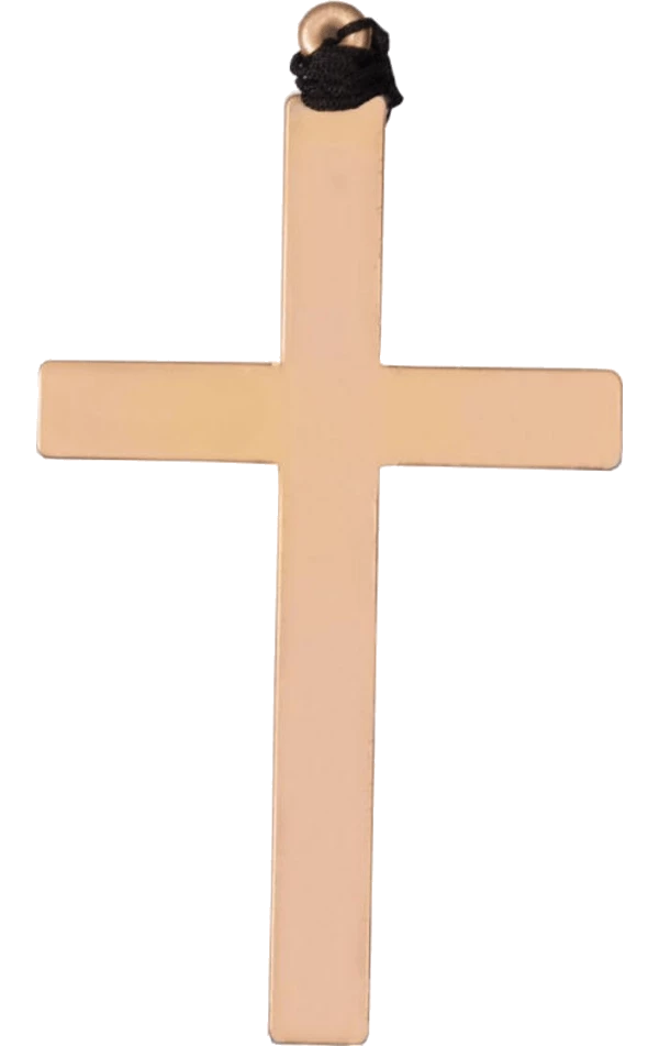 Heavyweight gold colour Monk, Vicar or Nun cross with black cord. Cross measures 8.”