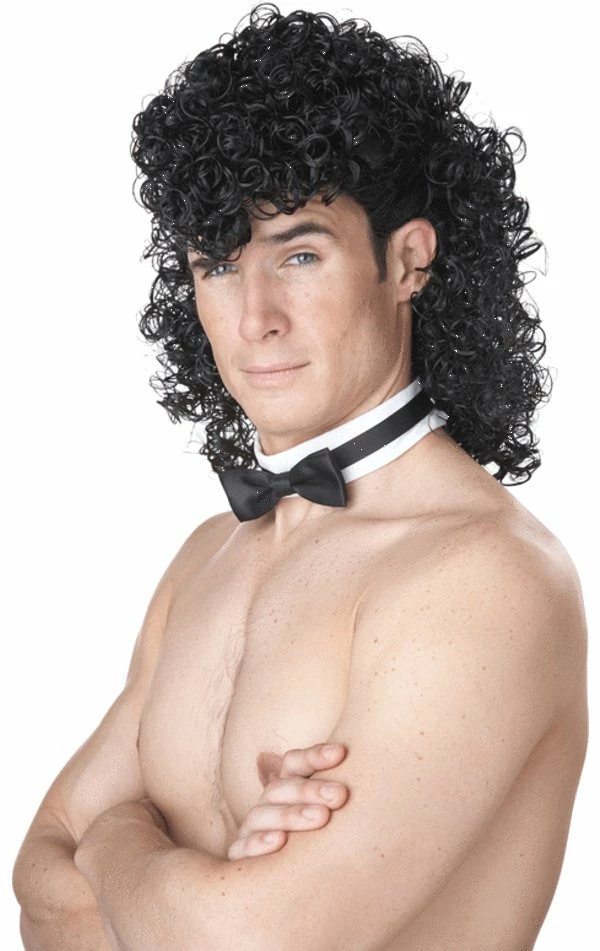 Our Adult Stripper Wig and Collar is a comedy wig with a permed mullet style that makes for a fantastic comedy outfit with a bow tie collar.