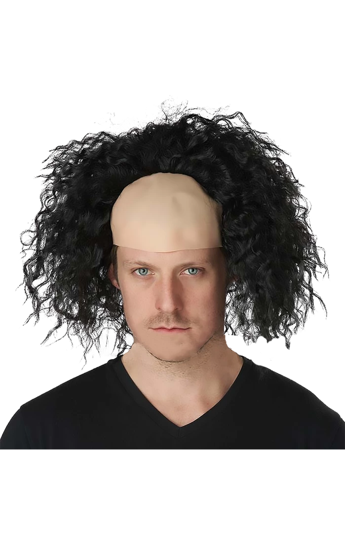 For the evil souls losing their minds but not their hair, this Evil Bald Clown Wig features a flesh-coloured bald forehead with a spooky black curly style.