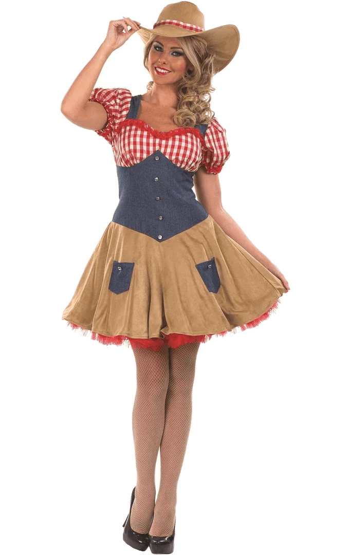 Yeeha! Howdy pardners. Do si do and swing your partner round and round at the local barn dance in this cute Adult Cowgirl Costume.