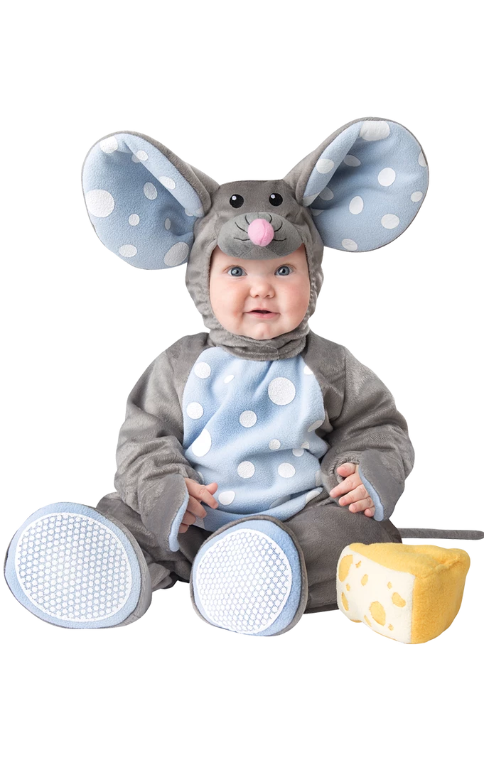 Includes: Jumpsuit, Hood, Soft Toy Cheese, Detachable Tail, Booties
