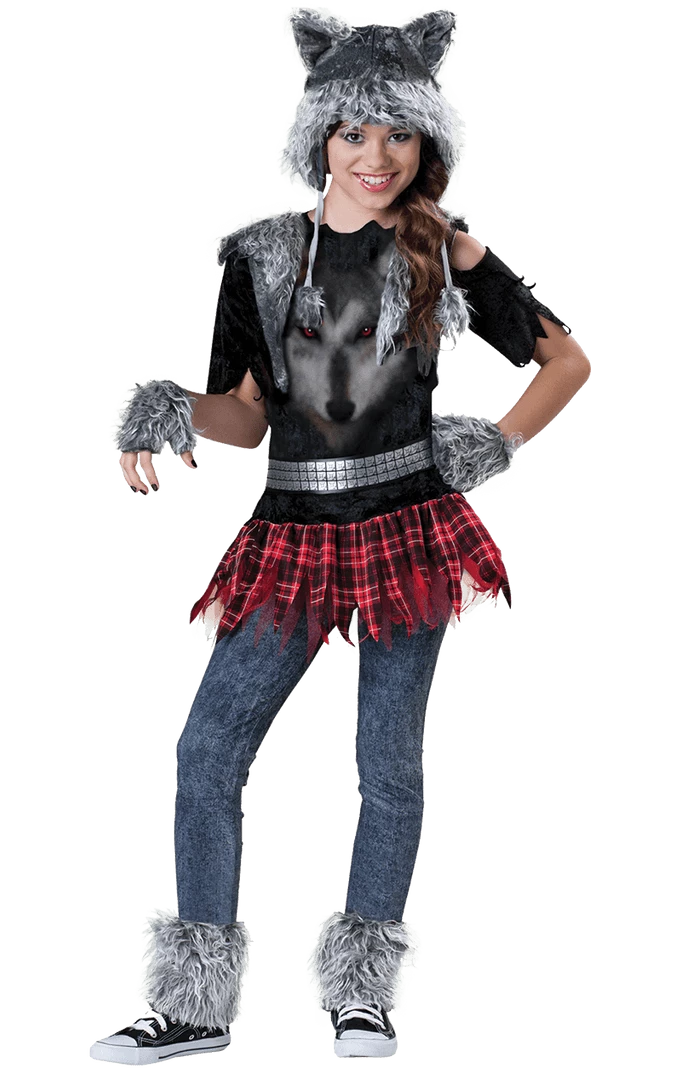 Shapeshift on the dancefloor until twilight in this plush werewolf outfit. It’s the perfect costume choice for those inbetween ages of 8 – 14. Featuring a furry wolf hoodie, fingerless gloves and a ripped t-shirt, it’s a winning combination of Halloween costume and teenage fashion. Wear it on its own or with leggings/jeans and trainers.