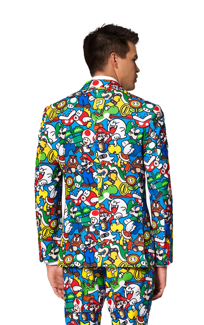 Jump down pipes, ride clouds and save Princess Peach in this epic Adult Super Mario OppoSuit. If you spent most of your childhood years in front of a SNES, Gamecube, Game Boy, DS or Wii then you’ll have certainly played Super Mario at some point. This patterned suit is covered in Mario print, including all your favourite characters, objects and villains. This outfit is the most retro throwback costume to wear to that upcoming 80s or 90s party, so grab one whilst you can, because they’re officially licensed by Nintendo and will be gone quick!