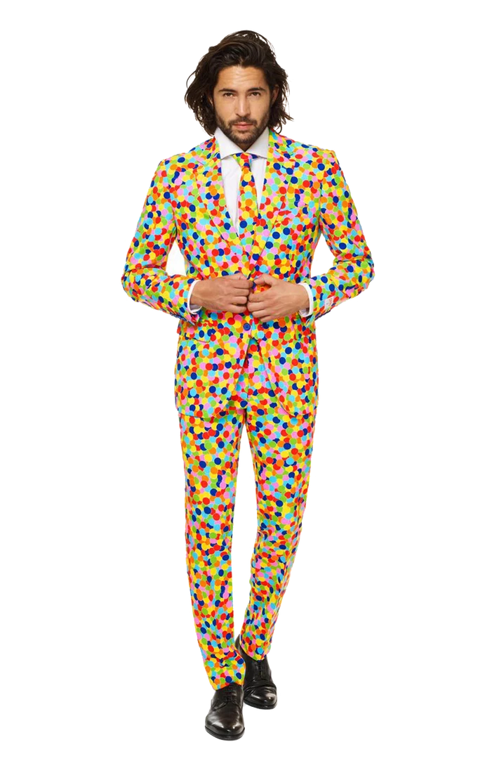Every party animal needs a statement suit. Who can miss those bright coloured dots, it’s like a confetti canon has gone off and our eyes are dazzled! There’s a new party King in town and he’s going to bring cheer, brightness and laughter to all he meets!