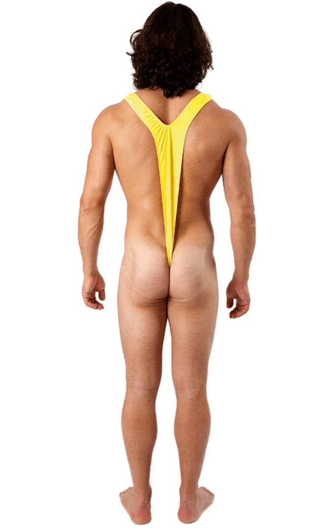 The Adult Borat Yellow Mankini Swimsuit is brightly coloured and crafted from a stretchy fabric. The mankini features a thong-style back to reveal your peachy behind.
