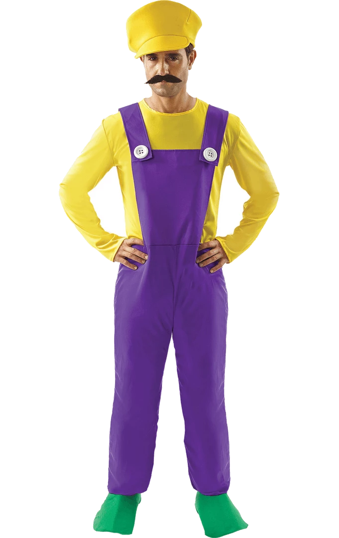 With this Wario costume, you’ll look like the Super Mario villain wearing a jumpsuit that features a yellow top with attached purple dungarees.