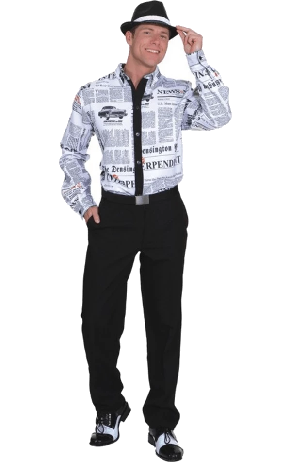 The Fleet Street Hacking Scandal Shirt is a white shirt with a newspaper pattern in black and red.