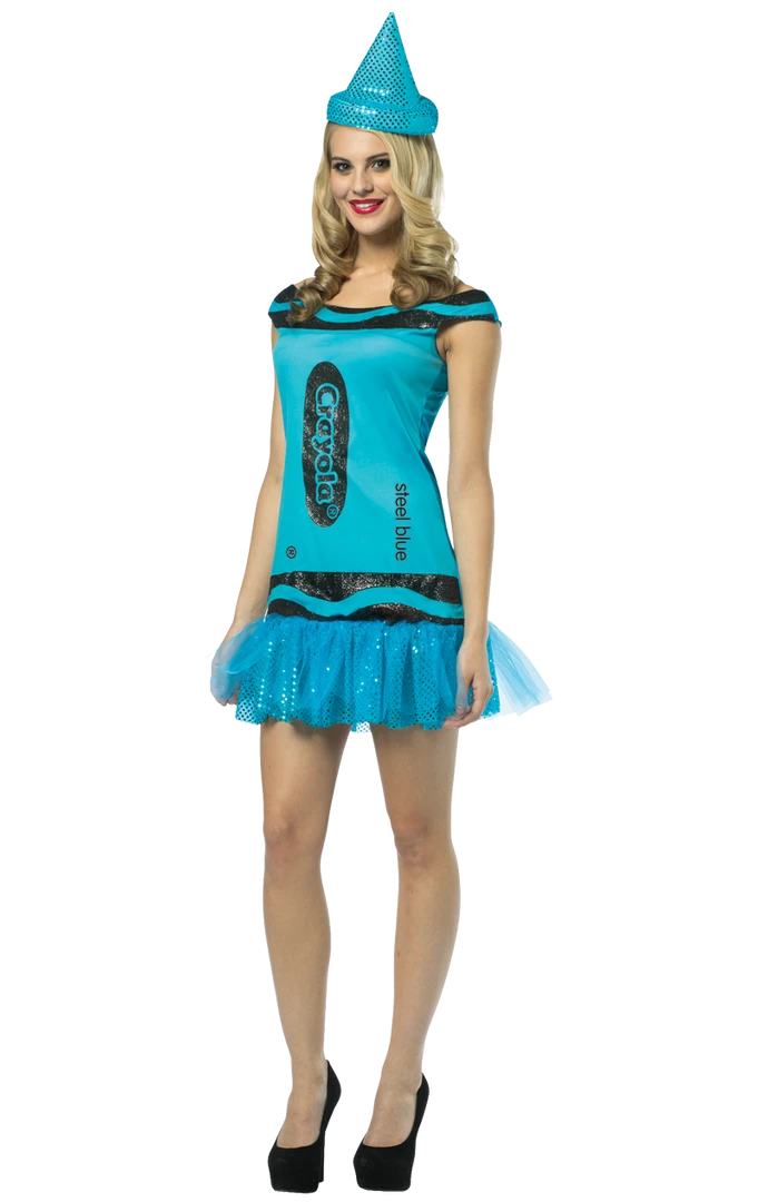 Shimmy and sparkle in our Adult Blue Glitter Crayola Costume. The perfect group costume and festival wear to stand out amongst the crowd!