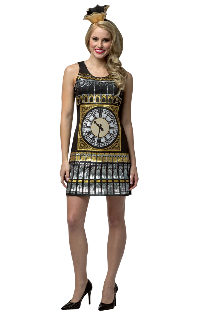 Our Big Ben Fancy Dress costume is the perfect thing to see in the new year, keep the party ticking and announce the new year with gusto for everyone to hear. Be a British icon! Product comes with dress and hat.
