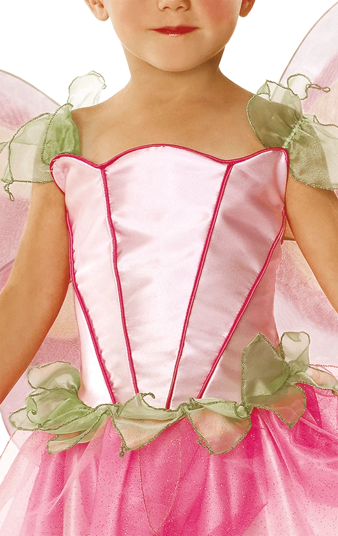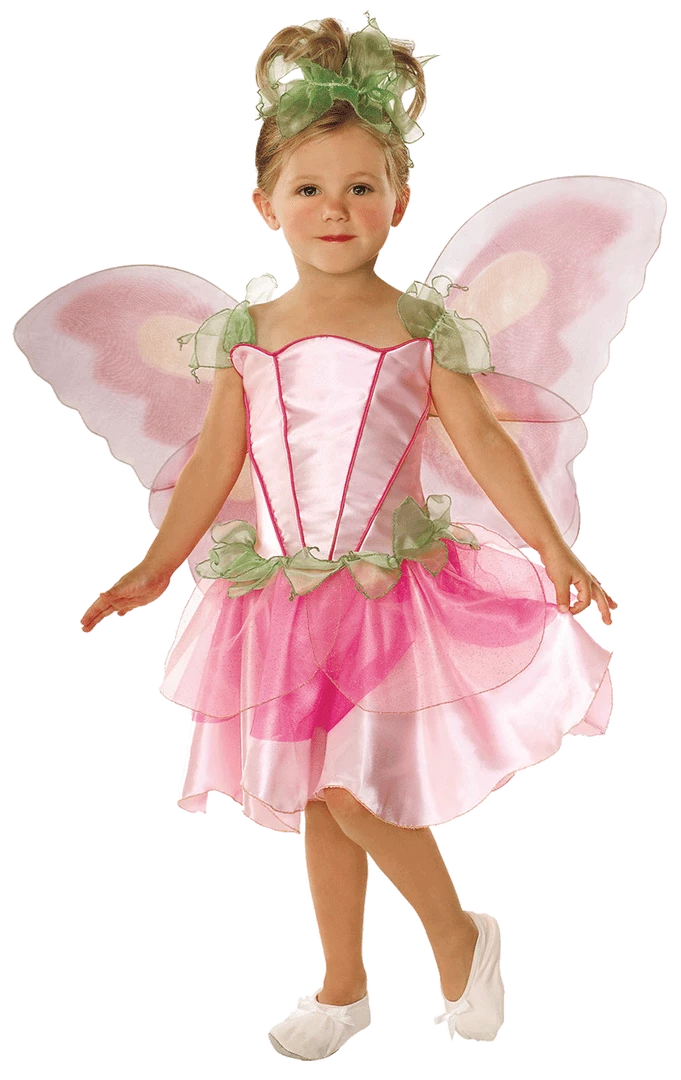The Child Fairy Costume includes a pink and green dress with a netted overlay. Made from 100% polyester, your little fairy will stay cool as they get up to mischief. Also included is a pair of matching pink fairy wings.
