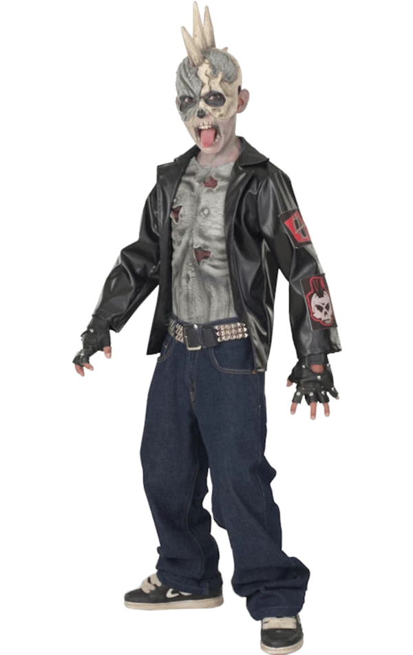 This Boys Punk Zombie Halloween Costume looks dead gruesome with this punk-inspired attire and trademark mohawk.
