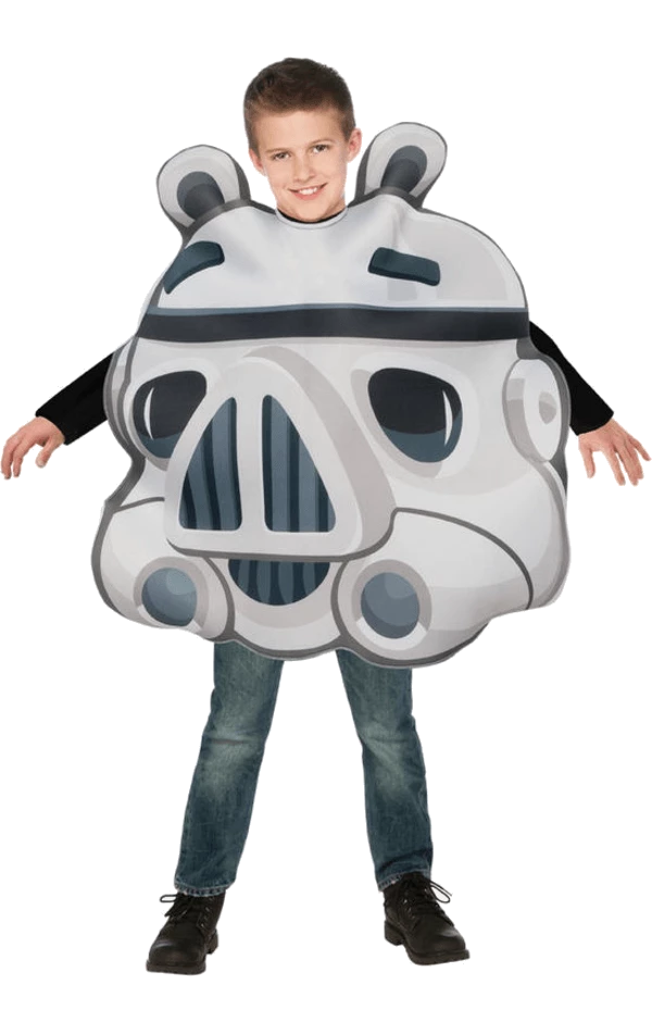 The Child Angry Birds Stormtrooper Costume includes a grey stormtrooper pig outfit with foam padding and holes for your child’s neck and arms to fit through.