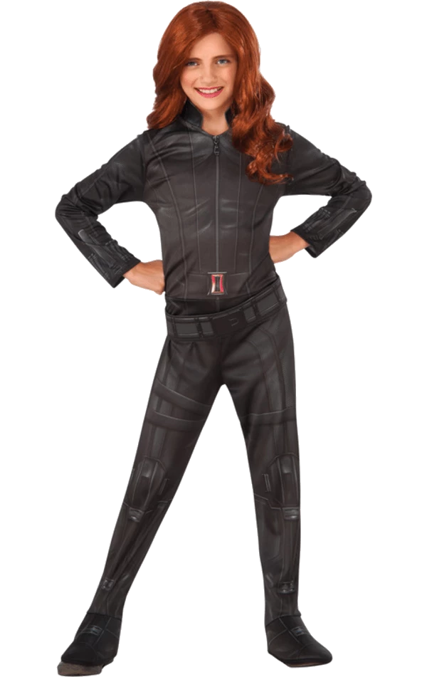 The Childrens Black Widow Costume from Avengers Assemble includes a all in one fitted jumpsuit and accompanying belt. Other accessories are available separately.