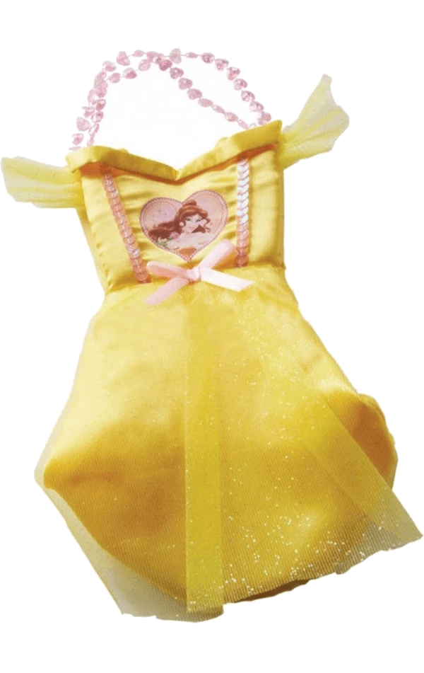 The Childrens Disney Golden Belle Costume Bag is a yellow dress-shaped bag that looks like Belle’s dress from Beauty and the Beast.