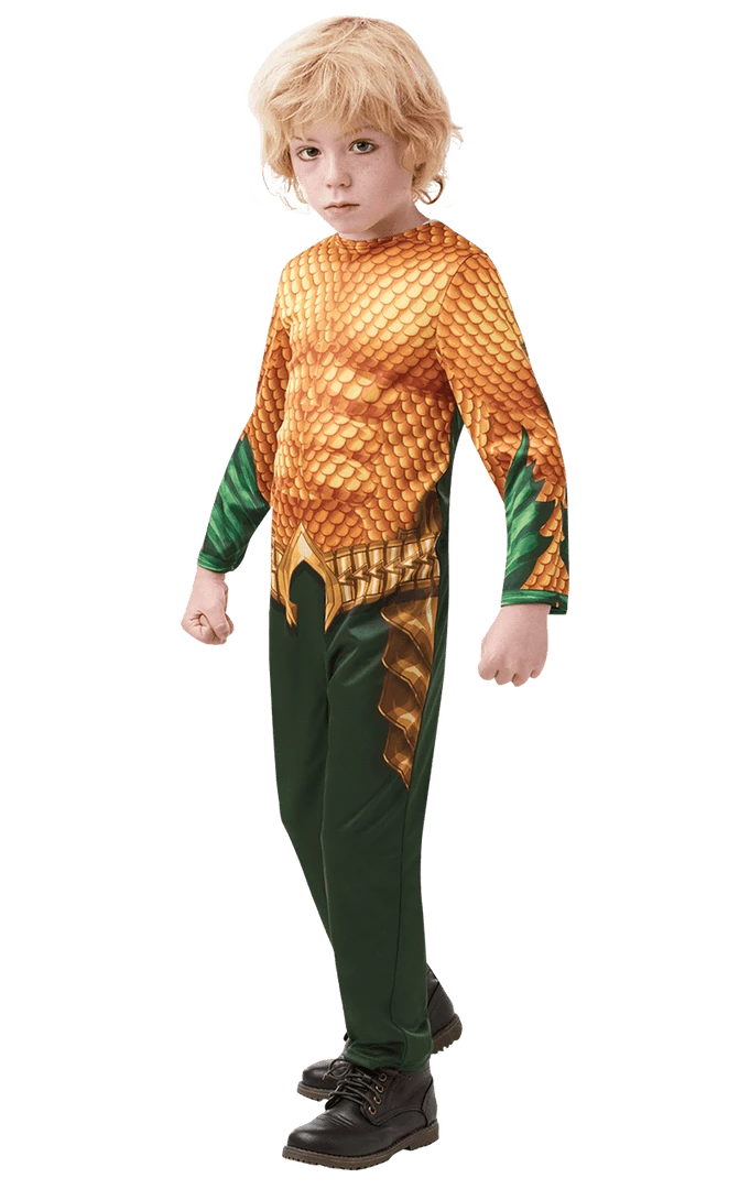 The Kids Aquaman Costume is based on the character’s look from the standalone Aquaman movie. It’s an all-in-one jumpsuit with unique prints and detailing, that’s designed to look just like Aquaman. Scales, fins and bright colours will ensure that everyone recognises your little one as the king of the seas!