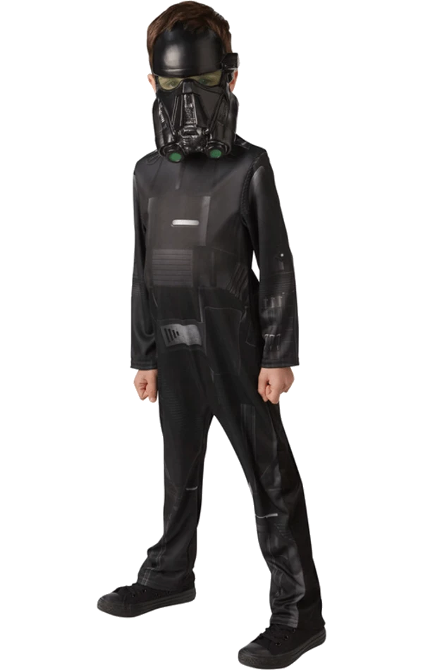 The Kids Classic Death Trooper Costume includes a printed jumpsuit with a plastic facepiece that will help you when joining the dark side and fighting for Darth Vader! From the Rogue One movie comes this villain, and your little one will be the most feared Stormtrooper at the party in our Kids Classic Death Trooper Costume.Â