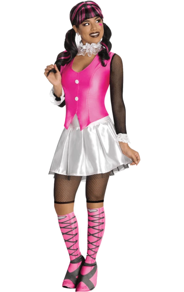 Our fabulous hot pink Monster High Draculaura Costume is a fantastic fancy dress idea for a Halloween party! This fun outfit is based on the popular children’s doll and perfectly captures the vegan vampire’s sassy style.