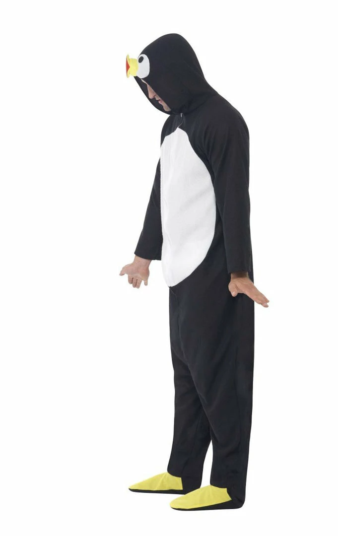 Our Penguin Onesie Costume is a hilarious outfit that would be perfect for a Christmas party, or an event that calls for a cool mammal. The zip-up jumpsuit is easy to wear and is guaranteed to make you the centre of attention! The Penguin Onesie Costume includes a black and white zip-up jumpsuit with built in yellow feet and an attached hood. The hood has an adorable little face on the front and a stuffed beak.