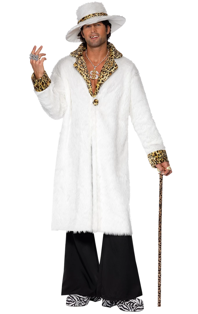 It’s time for you to unleash your inner pimp and strut down the corridor knowing that every single person at the party has their eyes on you! Our Adult White Faux Fur Pimp Costume is a great costume idea for stag dos, Pimps and Ho’s themed parties, or a night out on the town with the boys. You might just want to pop on a pair of sunglasses on, as this costume is going to set your eyes alight!