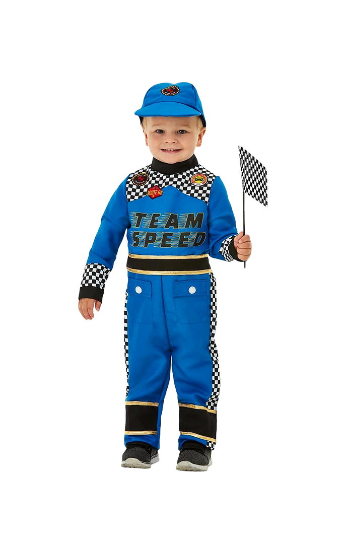 Beep Beep! Your little one will just love roaming around the party in this Child Race Car Driver Costume. Whether the F1 is on the TV, he’s got a sports themed party or a Cars the movie themed party, this toddler racing car driver costume is perfect. Complete with jumpsuit, cap and flag, he’ll be ready in a flash for your next fancy dress party!