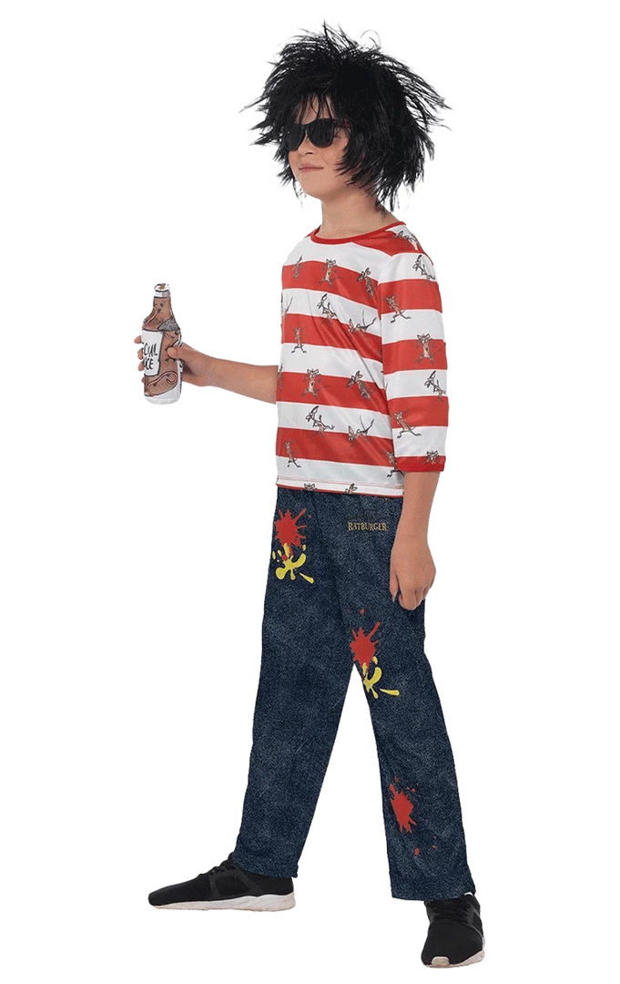 The Children’s Ratburger Costume is made up of a striped red and white top that’s printed with images of rats, as well as trousers that feature red and yellow sauce splattered across the front. The costume also features a black wig, a pair of dark glasses and a special sauce bottle accessory. It has a built-in sound chip that creates hissing and squeaking sounds, just like the rats he serves up in his in burgers.