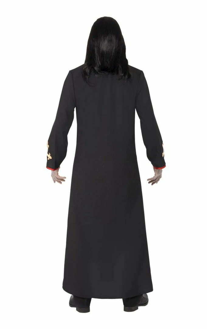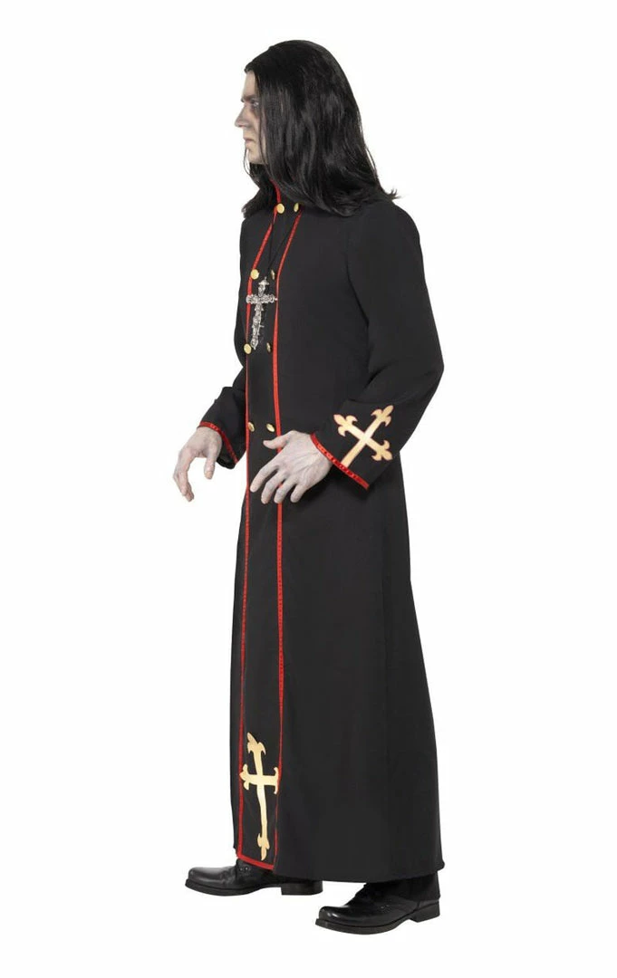 The Minister of Death Costume includes a long black and red robe with gold buttons and printed gold crosses.