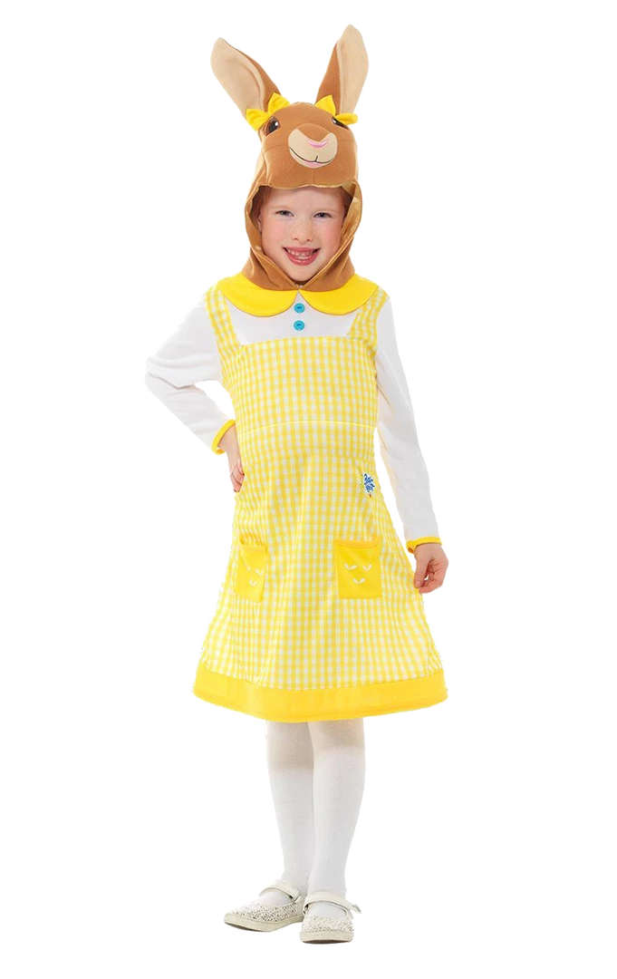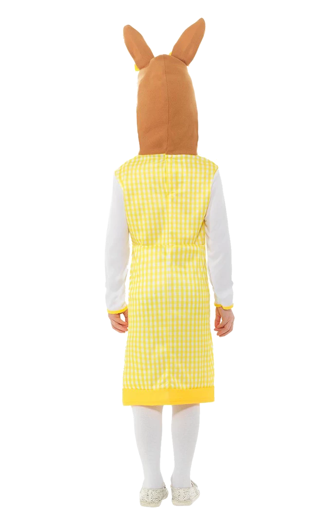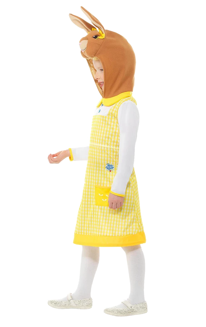 Trying not to get up to mischief couldn’t be any easier with this pretty yellow and white dress with a fun character rabbit hood.