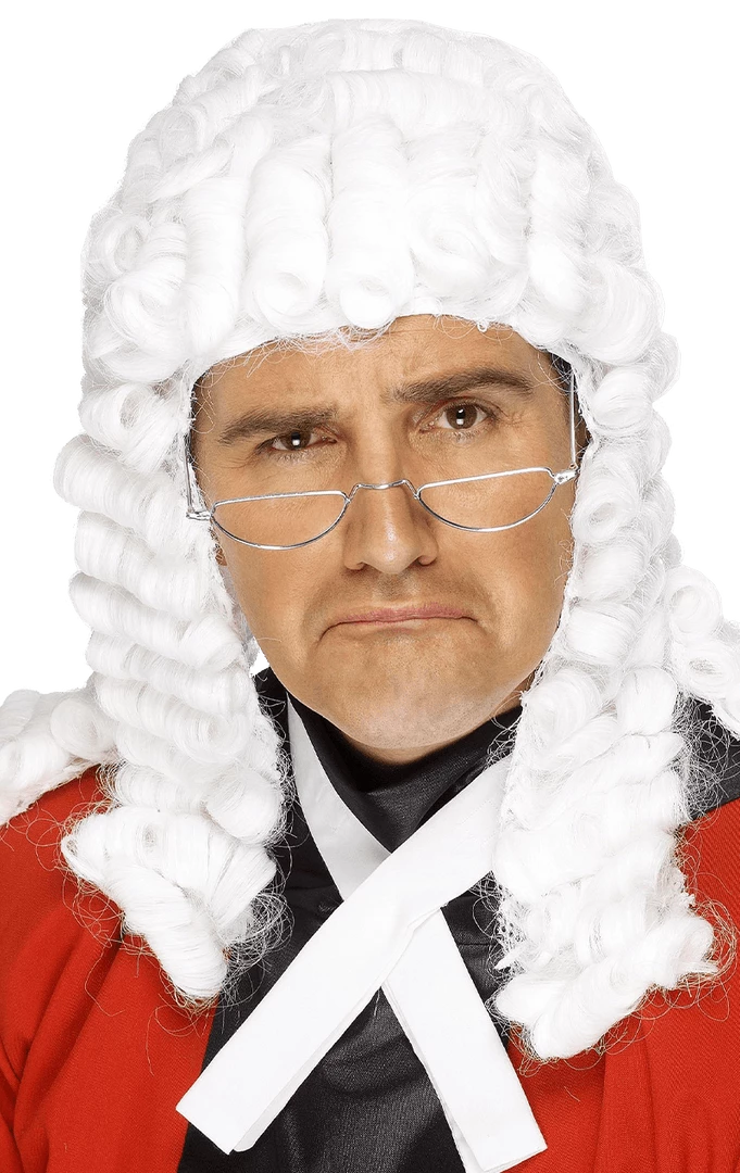 Sentence dangerous criminals with our impressive Judge Wig, which is white and styled with curls to create a realistic look.