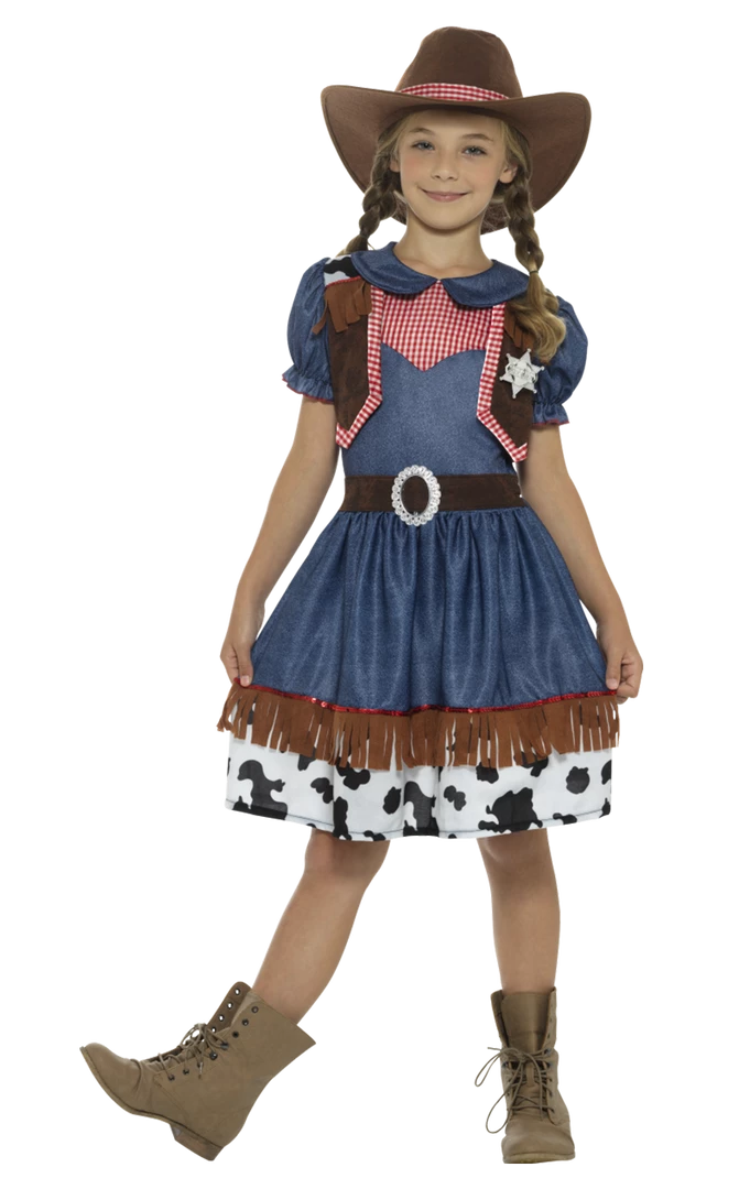 Get your line dancing shoes on and hit the dance floor with your little girl, when she’s dressed in the Kids Texan Cowgirl Costume. She’ll be heading on down to the Wild West, lassoing herself a horse or two and getting into the Texan spirit with this adorable getup. Including a gingham, blue and cow print dress, with brown fringe and a Sheriff’s badge, and a cowgirl hat, there’ll be no denying who’s the boss in this town!