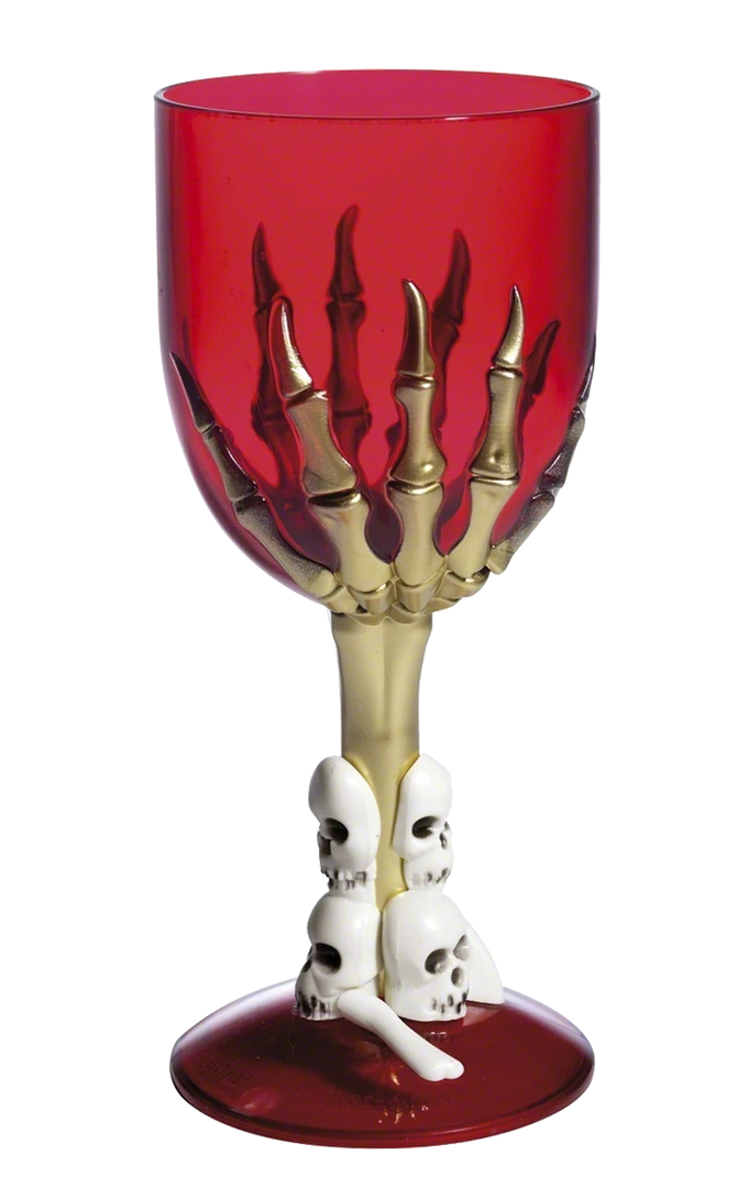 Drink your red wine (or blood!) in style this Halloween, when it’s poured into the Red Gothic Wine Glass. This haunting, plastic, glass with skeleton hand stems, and skull decorations, is sure to freak out your friends when they see you drinking from it. It’s the gothic Halloween glass you’ve always needed, and is sure to enhance any Vampire, Skeleton or Voodoo fancy dress costume!