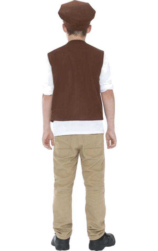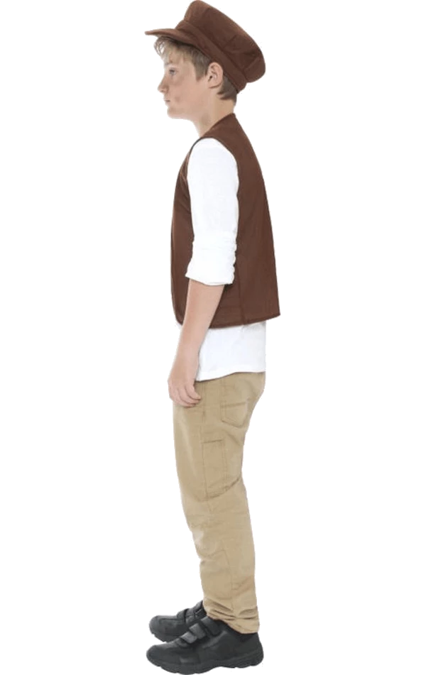 The Victorian Boy Accessory Set includes a simple brown waistcoat and a matching brown cap.
