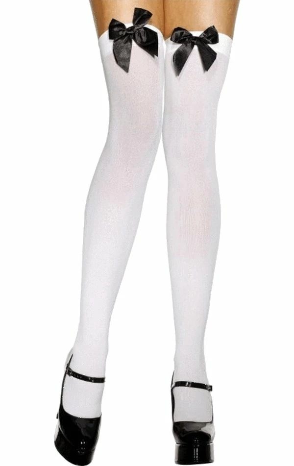 Our Womens White Stockings With Black Bow are a cute fancy dress accessory for the ladies looking to make a good impression.