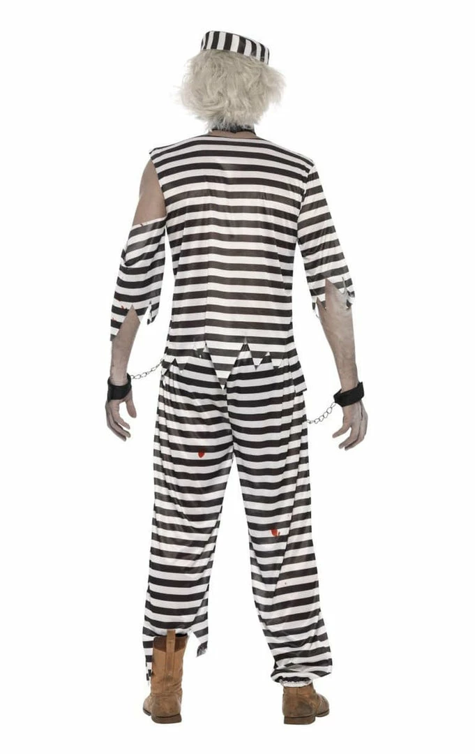 Transform into an undead bad boy with our Zombie Prisoner Costume! This eye-catching outfit is covered in blood spatters and comes complete with convict chains!