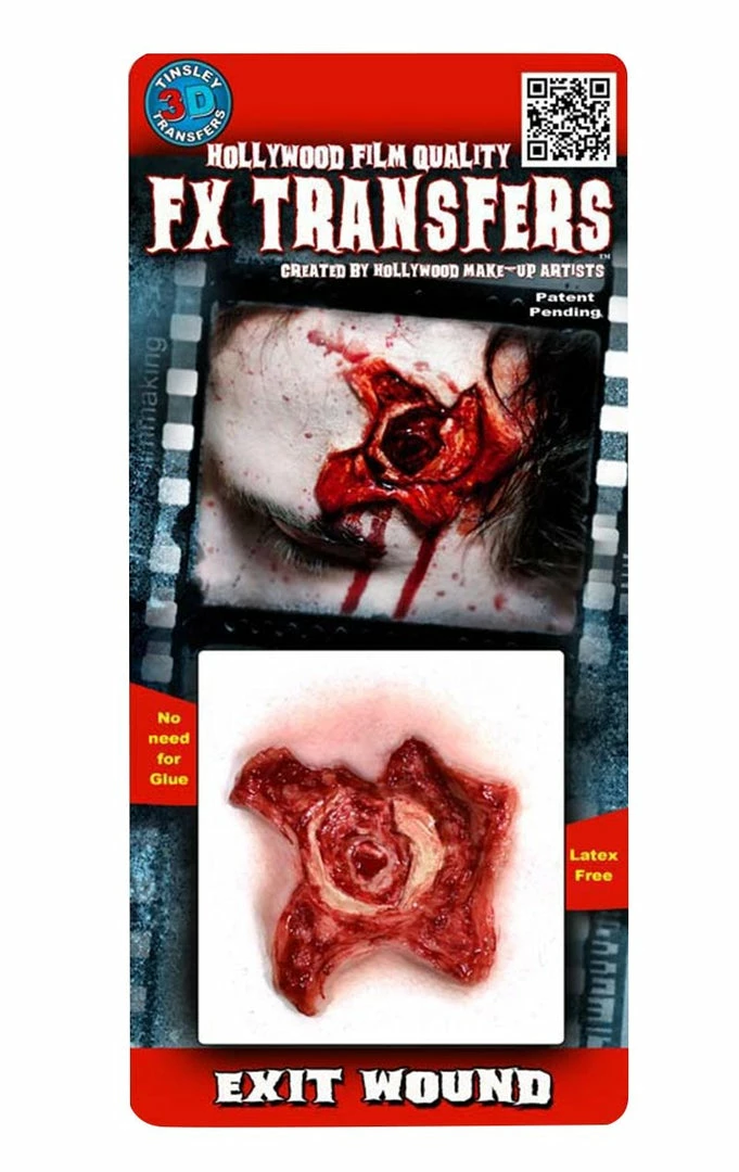 Yeesh! If you want people to be staring at you at that fancy dress party or Halloween for all the wrong reasons then get yourself the creepy, the disgusting and the repulsive Exit Wound 3D FX Transfer! This horrific number will make you look like you’re been in some kind of shoot out, so go on bite the bullet and get creative!