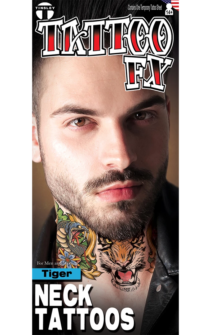 Have this roaring jungle creature displayed on your skin with this cool Tiger Neck Tattoo FX.