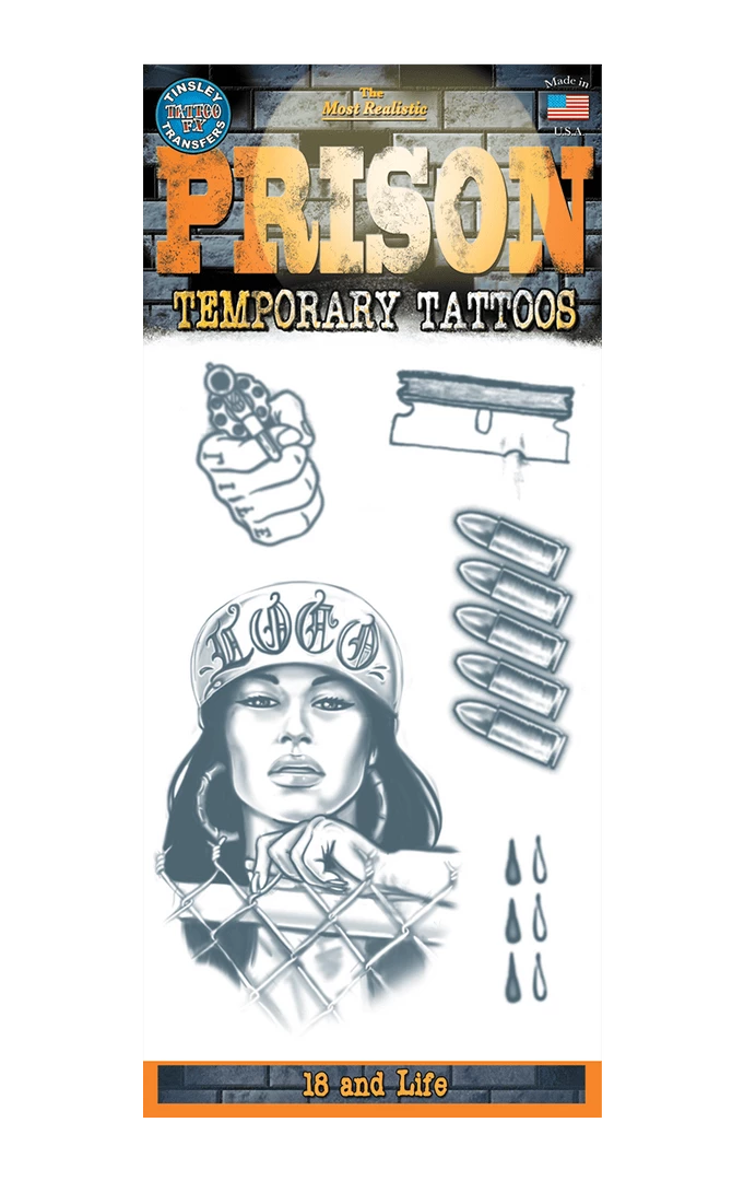 You’ll look every inch the menacing convict with these prisoner inspired tattoos, featuring skulls, clowns and guns. Easily applied with water, these are high quality, long lasting tattoos that look great worn on the arm, leg or ankles.