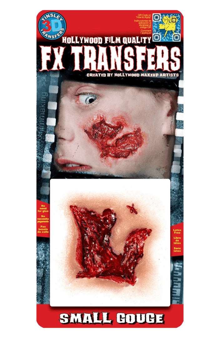 Create Halloween gouges for your zombie or horror victim look this Halloween with our easy to apply Small Gouge 3D FX transfer. This realistic prosthetic is easily applied with water. No messy glues needed!