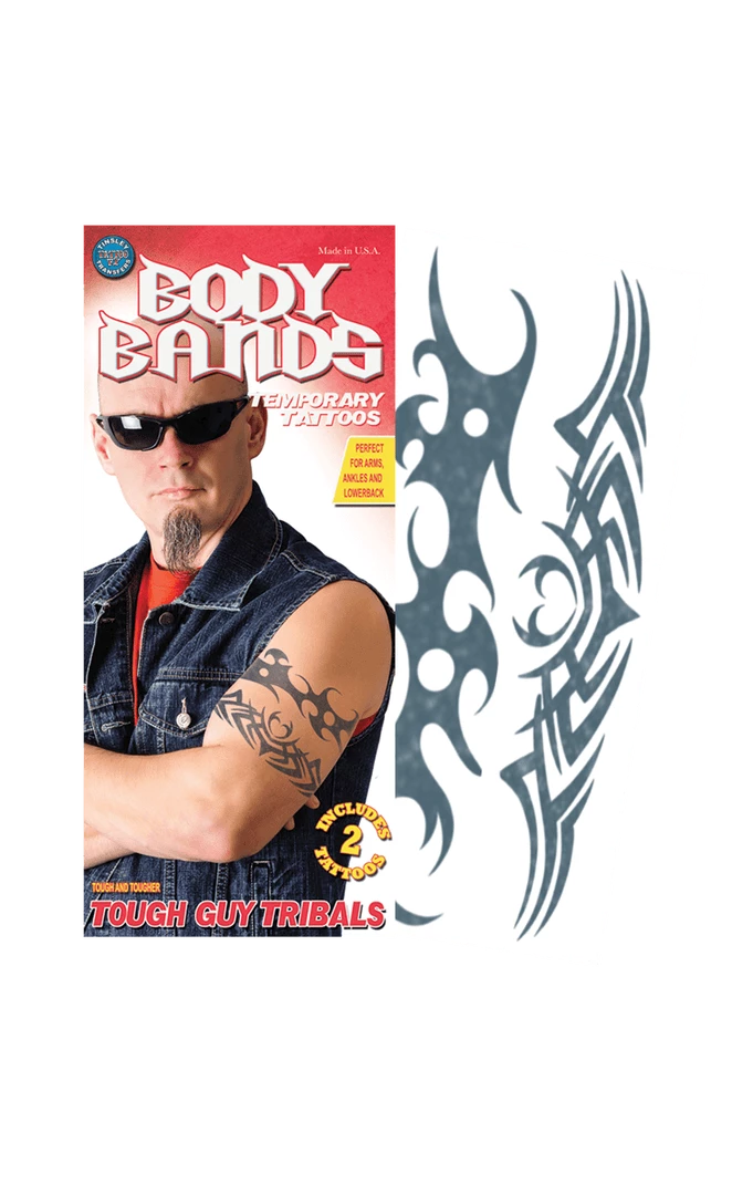 Transform yourself into a Halloween tough guy with these 80s metal biker inspired Tough Body Band tattoo designs. Easily applied with water, these are high quality, long lasting tattoos that look great worn on the arm, leg or ankles.