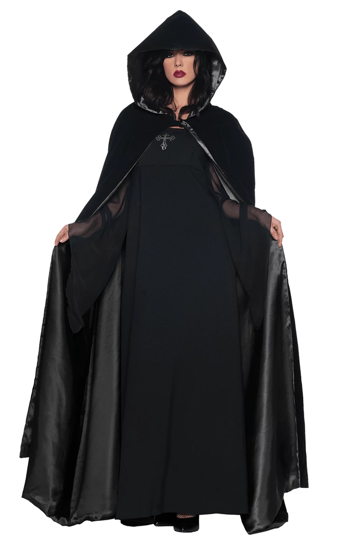 Whether you’re dressing up as an evil queen, a vampire or a witch this Halloween, you absolutely must have our unisex Black 63” Velvet Satin Cloak. It’s the accessory every magical being needs. Pair this with any black outfit to make a dark, bewitching statement.