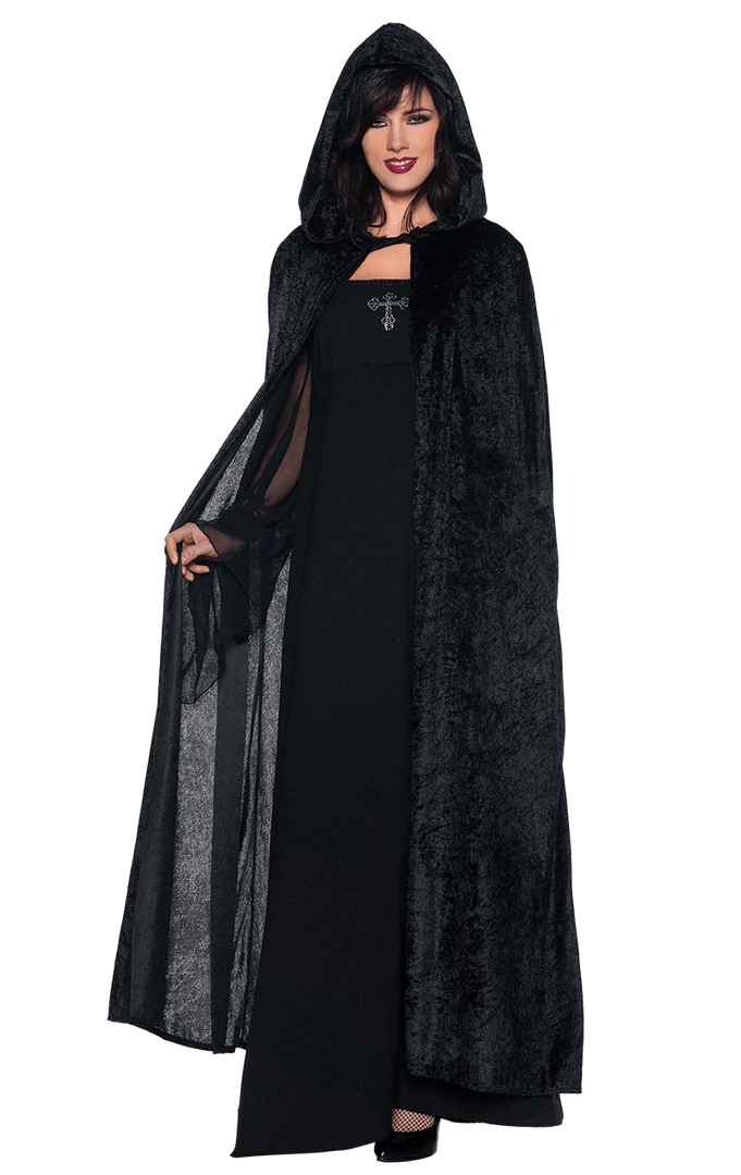 Our 55 inch Black Hooded Cloak Accessory is just the thing to finish off your mysterious Halloween look. This superior cloak is perfect for a variety of spooky looks be it vampire, witch, medieval maiden or warlock. A unisex accessory that’ll give any look an old fashioned tinge of mystery!